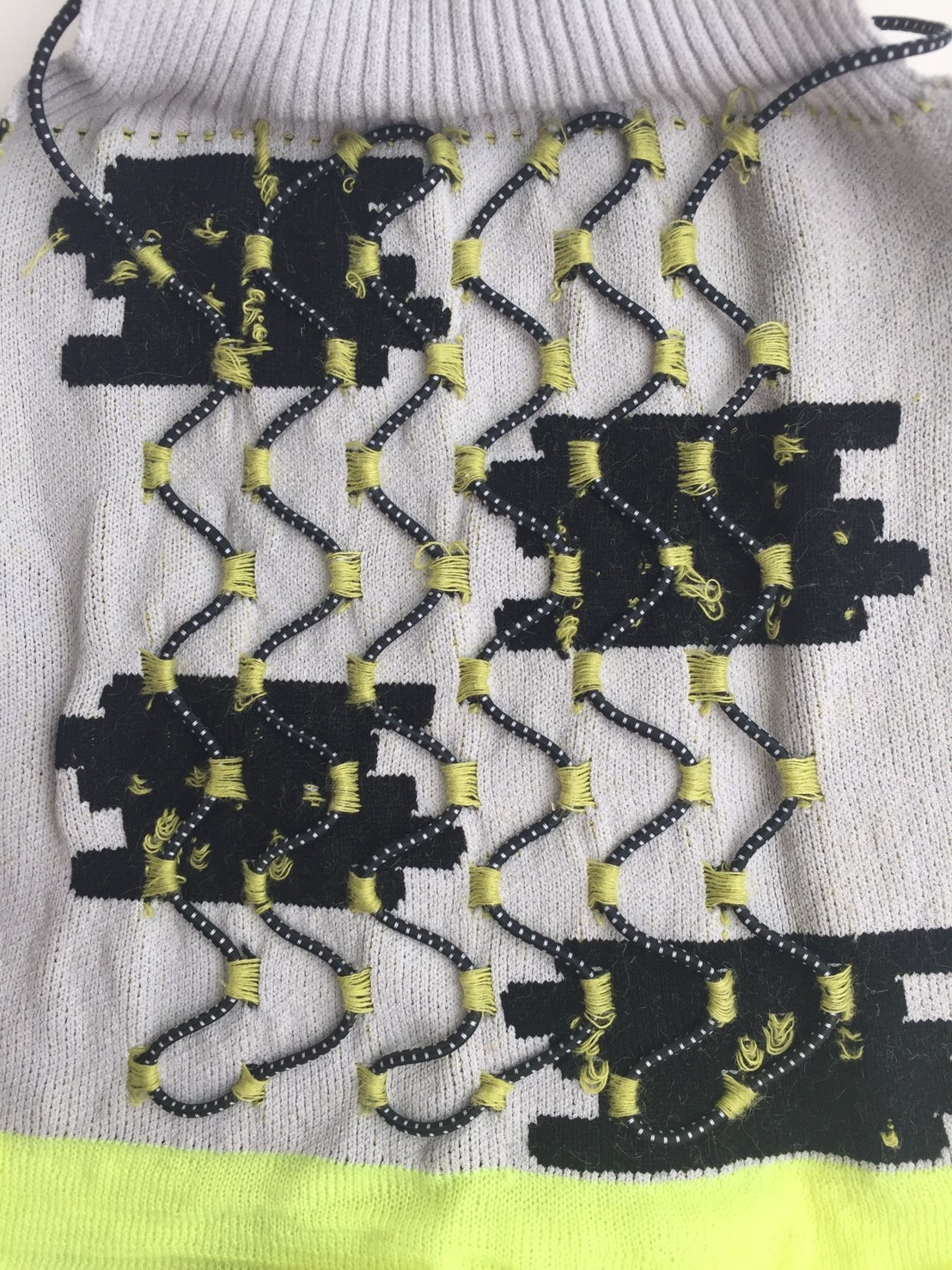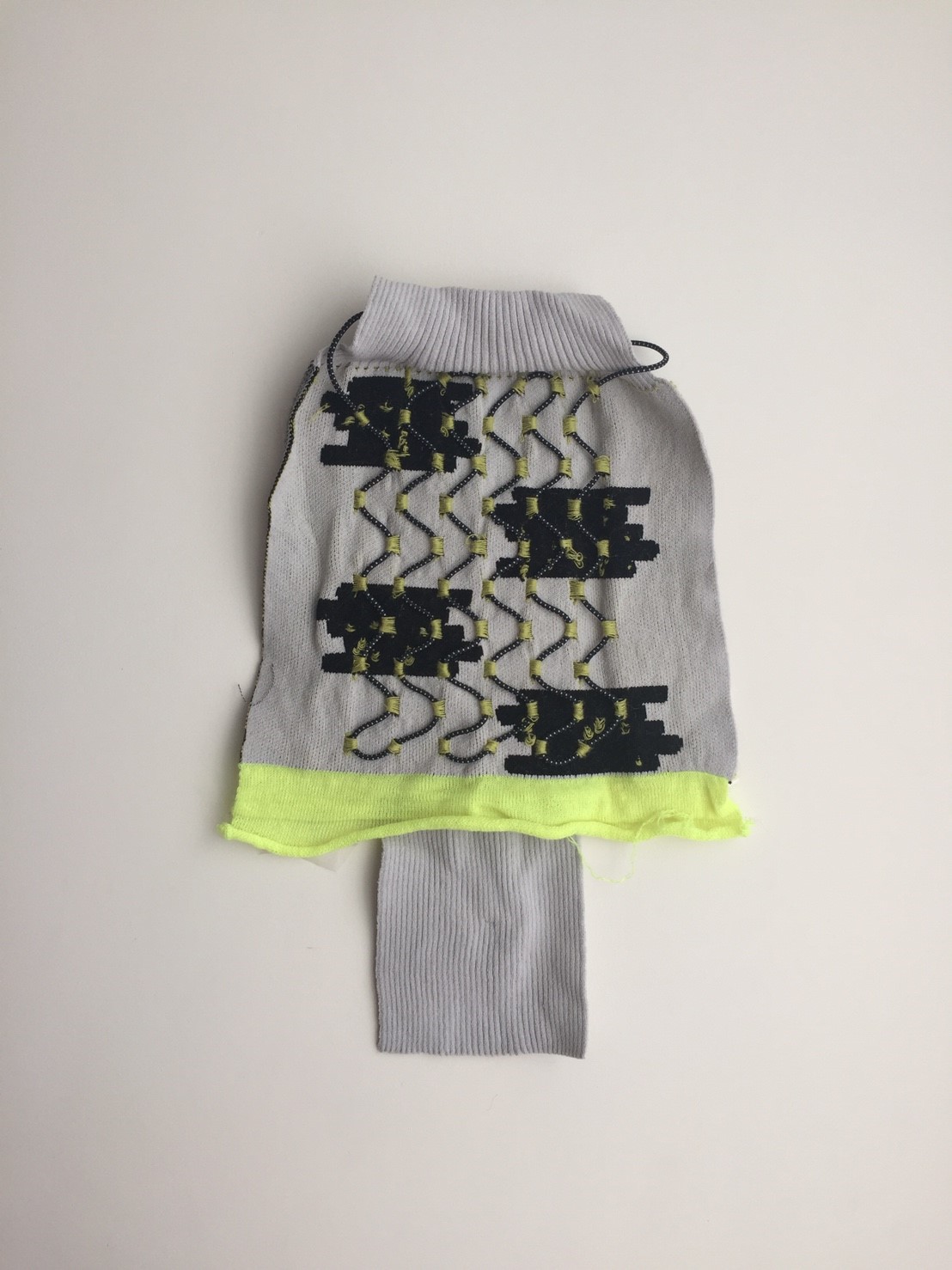 使用島精橫編針織機開發的針織布樣。在 This Is Escapism At It’s Best 系列上使用。